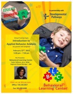 Free Virtual Parent/Caregiver Training: Intro to Applied Behavior Analysis (ABA) w/ Taylor Williams, M.A., BCBA